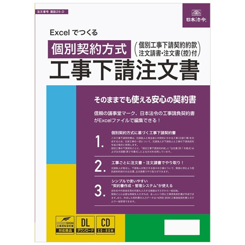 日本法令 Excelでつくる 個別契約方式 工事下請注文書 建設29-D 1本