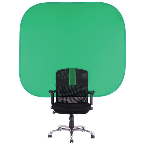 ●固定バンドを利用してイスの背もたれに固定でき、簡単に広げられるポップアップタイプのクロマキー背景スクリーン。画面の端までしっかりカバーできるワイドスクエアタイプです。