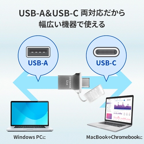 | 商品仕様 | ●色/シルバー ●容量/32GB ●インターフェース/USB Type-C:USB 3.2 Gen 1(USB 3.0)/USB 2.0、USB Standard A:USB 3.2 Gen 1(USB 3.0)/USB 2.0 ●動作環境/温度:0~40℃、湿度:20~80%(結露なきこと) ●対応OS/Windows 11/10/8.1/8、macOS 10.7~13、Chrome OS ●寸法/W約17.6×D28.5×H7.2mm ●重量/約4g ●その他仕様/●コネクタ形状:USB Standard A、USB Type-C ●付属品/取扱説明書 ●保証期間/1年 ●備考/※寸法は突起部を除く。 ※最新のOS対応状況はメーカーHPでご確認ください。 |