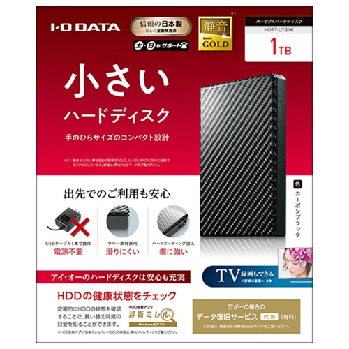アイオーデータ USB 3.1 Gen1/2.0対応 ポータブルハードディスク「高速カクうす」 1TB カーボンブラック HDPT-UTS1K 1台