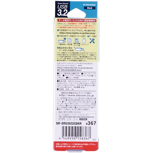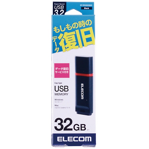エレコム データ復旧付きUSB3.2(Gen1)メモリ 32GB ブラック MF-DRU3032GBKR 1個