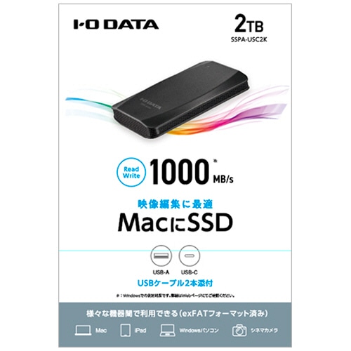 アイオーデータ USB3.2 Gen2対応 ポータブルSSD 2TB SSPA-USC2K 1台