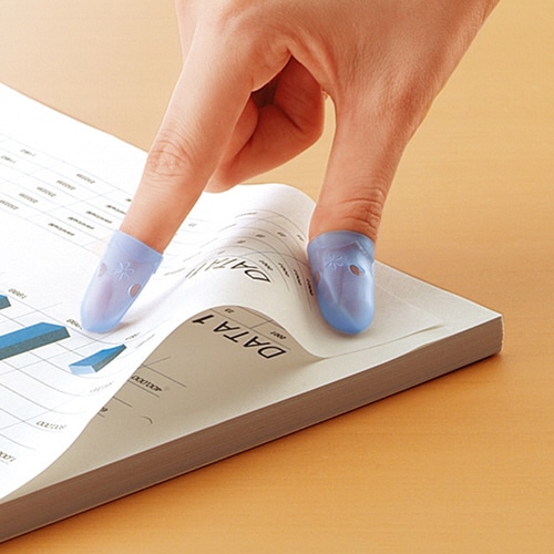 ●指先まで包み込むキャップタイプの紙めくり。Mサイズ、透明ブルー、3個×10パックセットです。