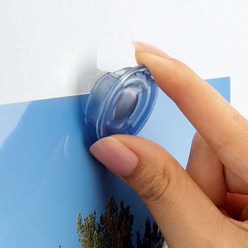 商品仕様 | ●直径/30mm ●色/透明ブルー ●保持枚数/約20枚 ●材質/プラスチック部:R-PS ●その他仕様/●高さ寸法:7mm ●備考/※保持枚数は対塗装スチール面でA4サイズのPPC用紙(64g/m2)を使用したときの測定値です。壁面や取り付ける紙によって保持枚数が少なくなる場合があります。 |