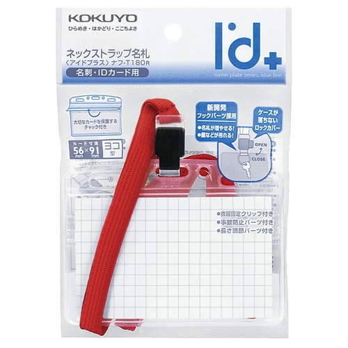 コクヨ ネックストラップ名札(アイドプラス) 名刺・IDカード用 チャック付 赤 ナフ-T180R 1セット(10個)