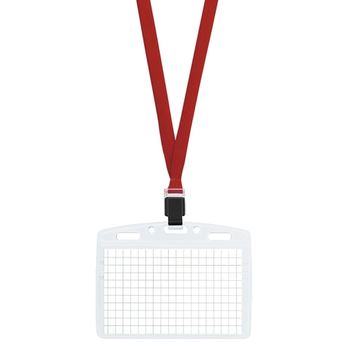●チャック付きネックストラップ名札の10個セット。紐の色は赤です。