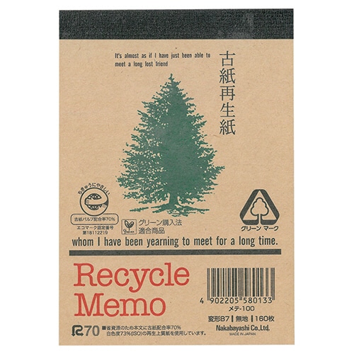 古紙再生紙を使用したメモ。