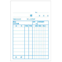| 商品仕様 | ●サイズ/B7タテ型 ●寸法/タテ139×ヨコ91mm ●伝票タイプ/複写式 ●複写枚数/2枚複写 ●行数/8行 ●カーボン/ノーカーボン複写 ●備考/※複写2枚目にミシン目が入っています。(本体はホッチキス止め製本されており、2枚目のみ切り離し可能。) |