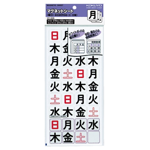 コクヨ マグネットシート(曜日) 土日休日赤字対応 27×27mm マク-335 1セット(360片:36片×10パック)