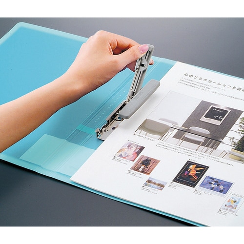 ●開閉レバー・紙押さえ部分ともにプラスチック製で、指に負担がかかりません。