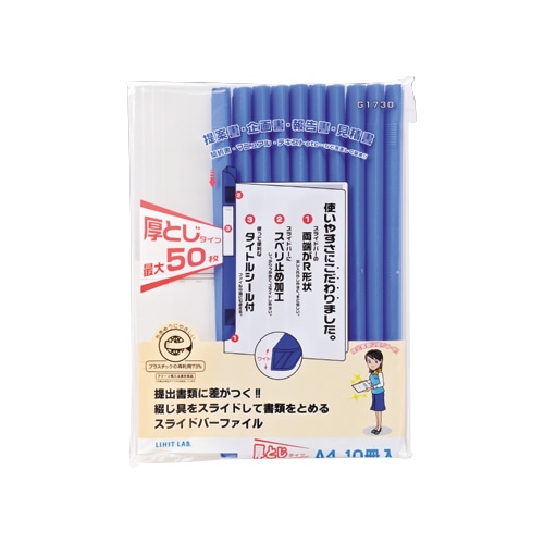 リヒトラブ リクエスト スライドバーファイル 厚とじタイプ A4タテ 50枚収容 青 G1730-8 1セット(100冊:10冊×10パック)