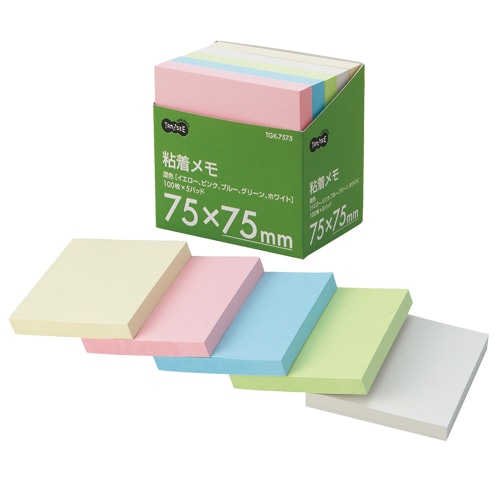 TANOSEE 粘着メモ<ボリュームパック> 75×75mm 5色 1セット(25冊:5冊×5パック)