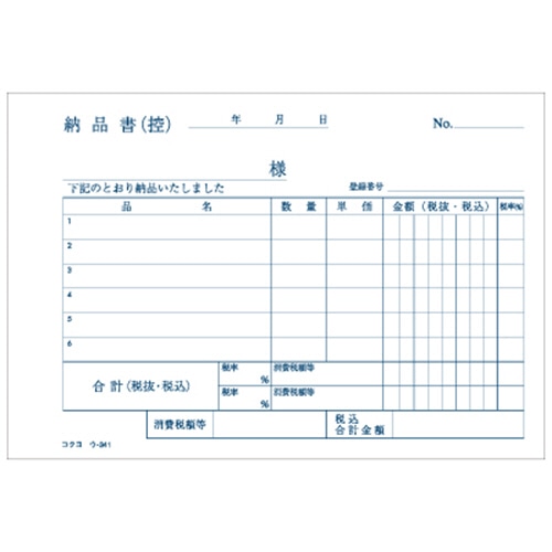 コクヨ NC複写簿(ノーカーボン)納品書 A6ヨコ型 2枚複写 6行 50組 ウ-341 1セット(10冊)
