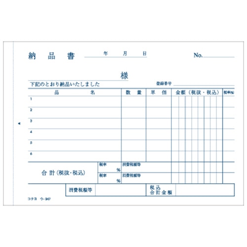 コクヨ NC複写簿(ノーカーボン)3枚納品書(請求付き) A6ヨコ型 6行 50組 ウ-347 1セット(10冊)