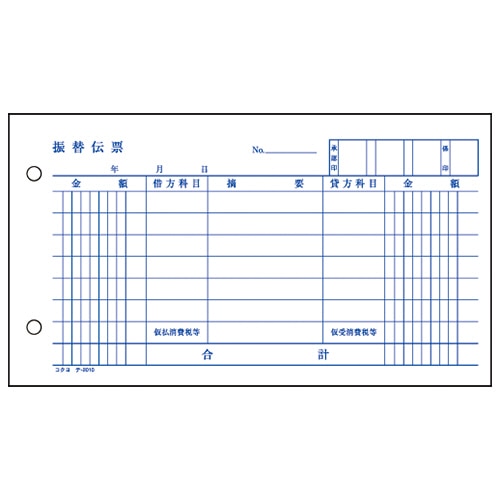 コクヨ 振替伝票(仮受け・仮払い消費税額表示入り) タテ106×ヨコ188mm 100枚 テ-2010N 1冊