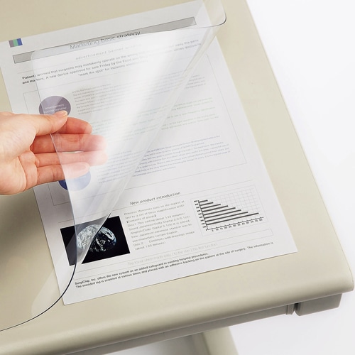 | 商品仕様 | ●シングル/ダブル/シングル ●タイプ/軟質 ●上敷サイズ/ヨコ900×タテ600mm ●上敷厚さ/1.0mm ●上敷色/透明 ●材質/PVC ●その他仕様/●下敷なし ●サ イ ズ/900×600mm |