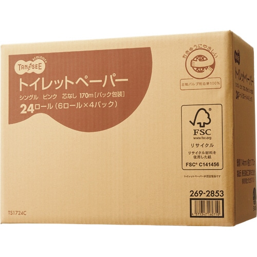 TANOSEE トイレットペーパー パック包装 シングル 芯なし 170m ピンク 1セット(72ロール:24ロール×3ケース)