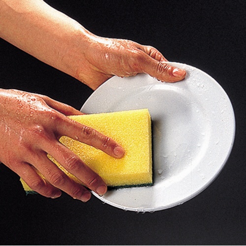 不織布と抗菌スポンジのW仕様。多目的スポンジたわし。