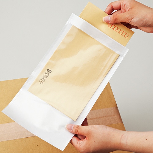 伝票類を入れてシールをはがし貼るだけ。ラクに、キレイに、宛名添付!