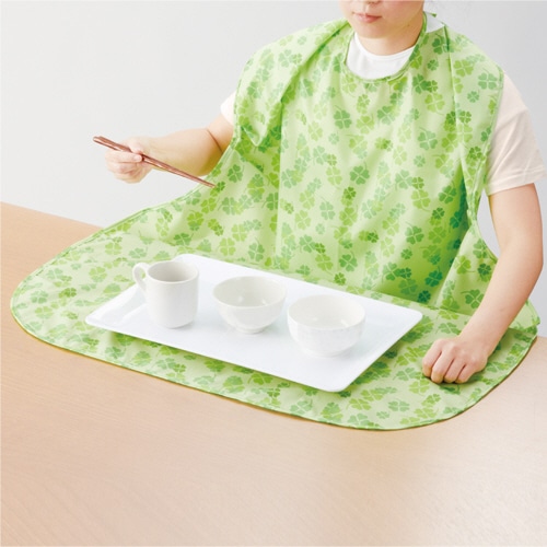 ●床や机を汚さない、ロングワイドタイプの食事用エプロンです。