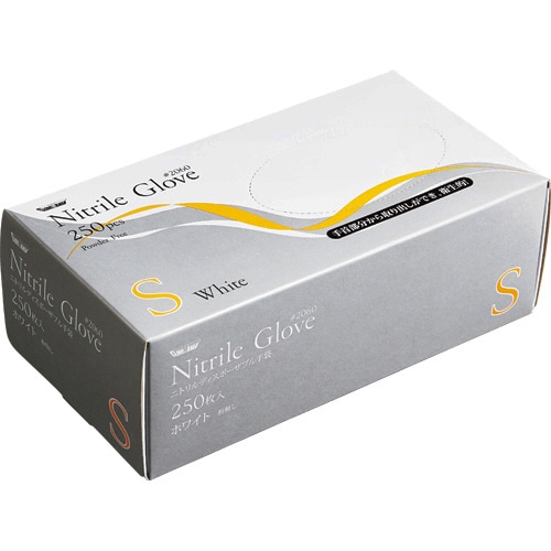 川西工業 ニトリル 使いきり手袋 粉なし ホワイト S #2060 1セット(2500枚:250枚×10箱)