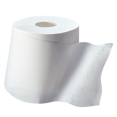 250mのロングロール。パルプ100%のやわらかさと芯なしの使いやすさが両立。