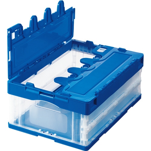 TANOSEE 折りたたみコンテナ フタ一体型 30L ダークブルー/透明 1セット(10台)