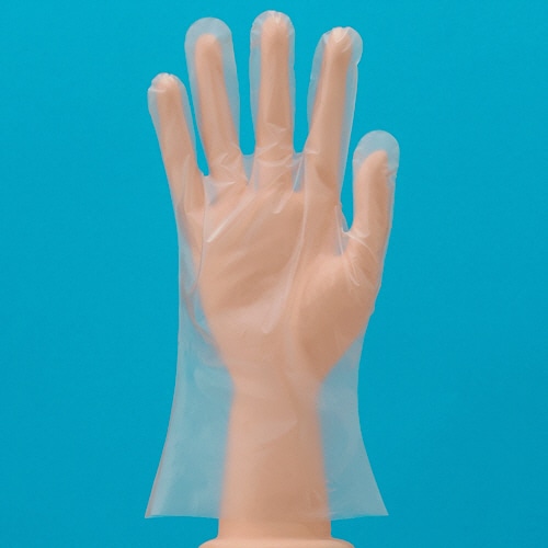 【食品衛生法適合】TPE素材配合でおむつ交換にも適したフィット感のあるポリエチレン手袋。