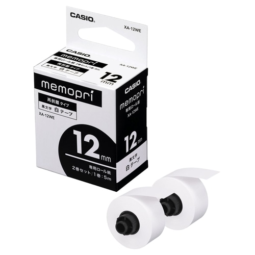 カシオ メモプリンター メモプリ 付箋テープ 12mm幅×5m ホワイト XA-12WE 1パック(2個)