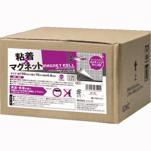 ソニック マグネット粘着ロール カッティングライン付 幅100mm×長さ10m×厚さ0.8mm MS-385 1巻