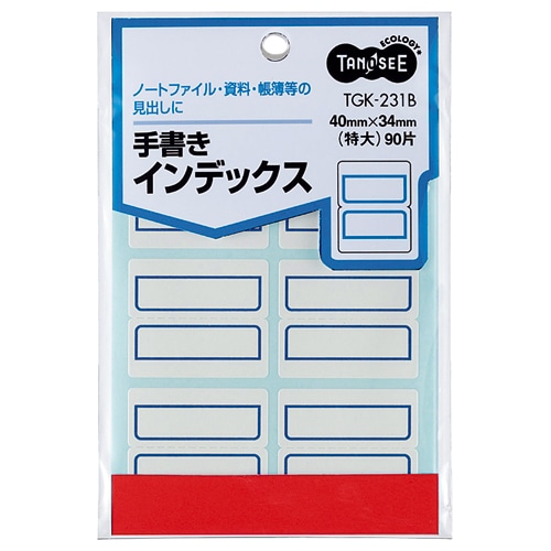 TANOSEE 手書きインデックス 特大 40×34mm 青枠 1パック(90片:6片×15シート)