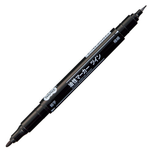 TANOSEE キャップ式油性マーカー ツイン 細字+極細 黒 1本