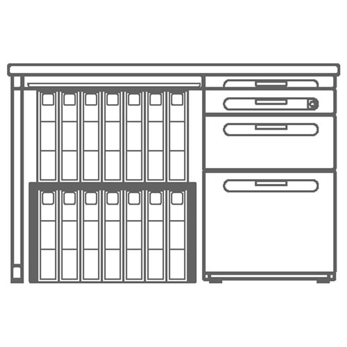 ●デスク下有効内寸の高さが625mm未満については、A4ファイルが上下2段に収納できませんので、デスクサイズをご確認ください。