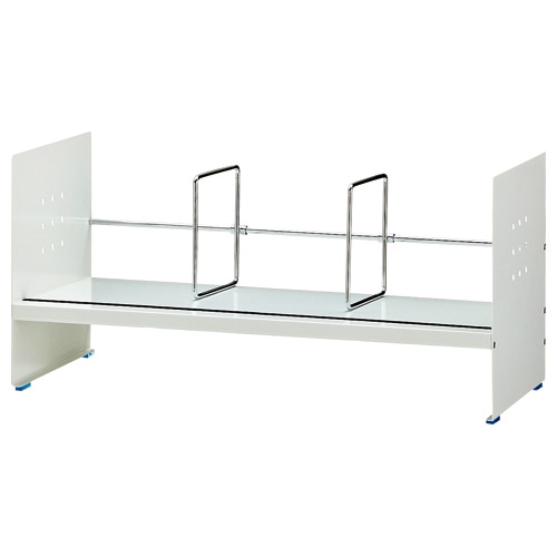 | 商品仕様 | ●種類/ブックスタンド ●サイズ/ハイタイプ ●色/ホワイト ●寸法/W600×D250×H284mm ●材質/フレーム・トレー・仕切り:スチール ●付属品/ブックサポート2本、足ゴムに耐震ゲルマット ●その他仕様/●棚板耐荷重:25kg ●棚下有効寸法:80mm |