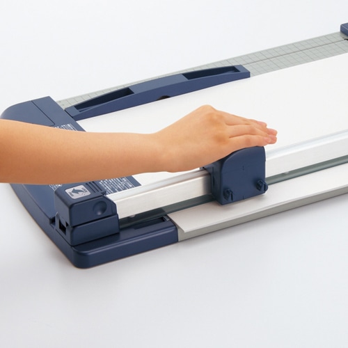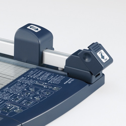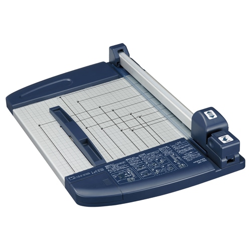 | 商品仕様 | ●対応用紙サイズ/A4 ●裁断幅/305mm ●裁断枚数/40枚 ●寸法/W353×D517×H95mm ●対応替刃/DN-T600A、DN-T600B ●材質/テーブル本体:鋼板、スライダー・紙当て・マグネット定規:R-ABS ●重量/2.6kg ●付属品/マグネット定規・替刃(ミシン目刃)1枚・替刃受け1枚 ●備考/※ミシン目刃はPPC用紙3枚以下でご使用ください。 |