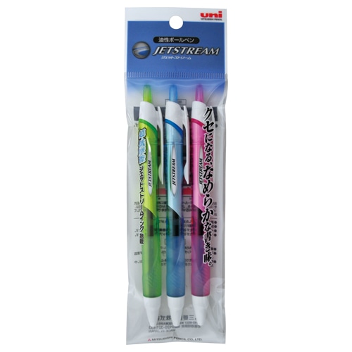 | 商品仕様 | ●インク種類/油性顔料 ●インク色/黒 ●軸色/水色・ピンク・緑×各1本 ●ボール径/0.7mm ●全長/139.6mm ●最大軸径/11.3mm ●対応替芯/SXR-7.24 ●材質/軸:再生PC樹脂・ラバーグリップ付、クリップ:ABS樹脂、口プラ:再生PBT樹脂 ●重量/9.3g ●備考/※重量・全長・最大軸径は1本辺り ●シリーズ名/ジェットストリーム ●インクカラー/ブラック(系) |