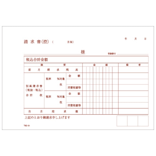 TANOSEE 合計請求書 B6ヨコ型 2枚複写 ノーカーボン 50組 1冊