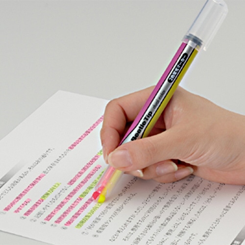【使い切りタイプ】持ち替えいらず。くるっと回せば、1つのペン先で2色使える。