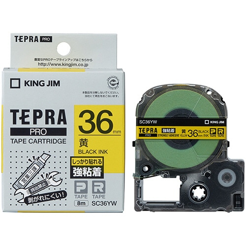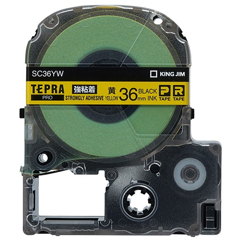 キングジム テプラ PRO テープカートリッジ 強粘着 36mm 黄/黒文字 SC36YW 1個