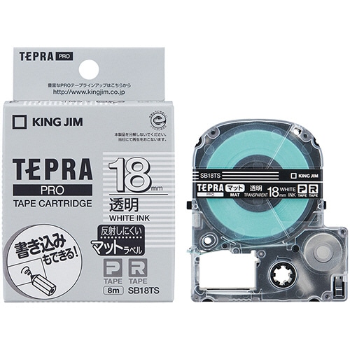 キングジム テプラ PRO テープカートリッジ マットラベル 18mm 透明/白文字 SB18TS 1個