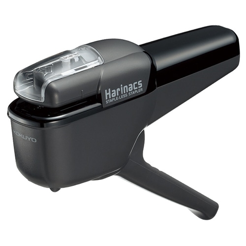 ●レシートなどの少枚数とじに便利。ハンディタイプの針なしステープラー。色は黒です。