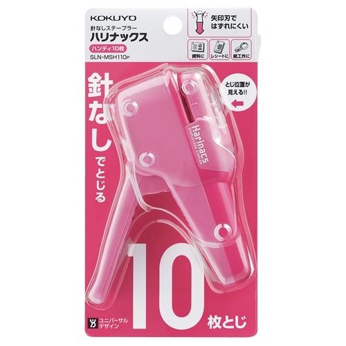 コクヨ 針なしステープラー(ハリナックス) ハンディタイプ 10枚とじ ピンク SLN-MSH110P 1個