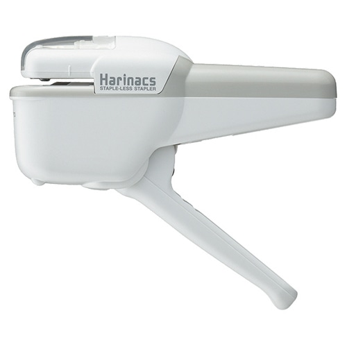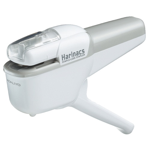●レシートなどの少枚数とじに便利。ハンディタイプの針なしステープラー。色は白です。
