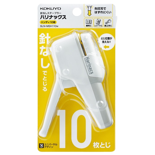 コクヨ 針なしステープラー(ハリナックス) ハンディタイプ 10枚とじ 白 SLN-MSH110W 1個