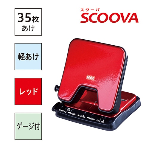 マックス 中空刃 軽あけパンチ スクーバ 35枚穿孔 レッド DP-35T/R 1台