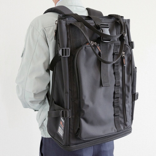 | 商品仕様 | ●寸法/W300×D170×H500mm ●重量/1460g ●色/ブラック ●材質/本体:ポリエステル、クッション:ポリエチレン、ポケット下部補強:PVC、ベルトテープ:ポリプロピレン ●その他仕様/●容量:20L ●ポケット数:14個 |