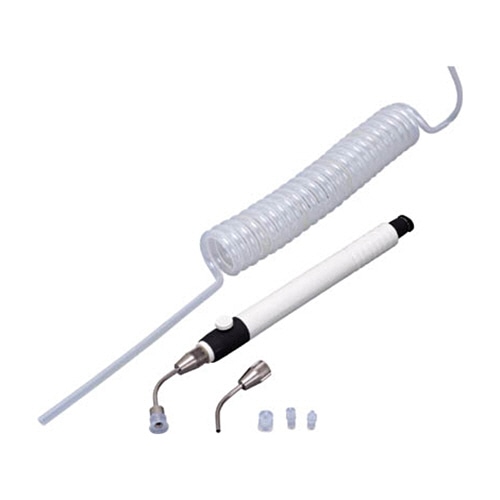 ペン型の本体に真空パッドと真空発生器を内蔵したエアピンセットです。