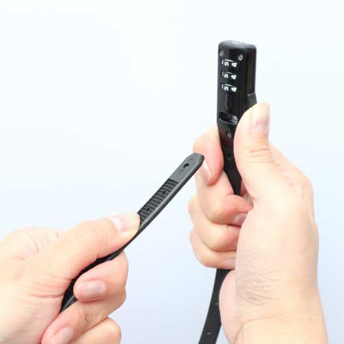 ●簡単にロックできる、ロングタイプ・ブラックの結束バンド式ダイヤルロック。汎用性抜群のサイズなので、さまざまな用途に使用可能です。