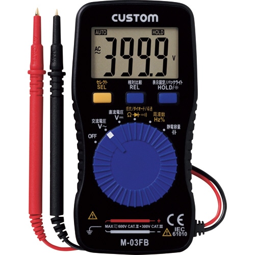 | 商品仕様 | ●寸法/W56×D11×H112mm ●重量/70g ●その他仕様/●測定項目:交流電圧、直流電圧、抵抗、導通、ダイオードチェック、コンデンサチェック、周波数、DUTY ●仕様:[最大表示]3999カウント、[直流電圧]600V、[交流電圧]:600V、[抵抗(Ω)]:40M ●検波方式:平均値整流(MEAN) ●電源:リチウム電池(CR2032)×1個(別売) |