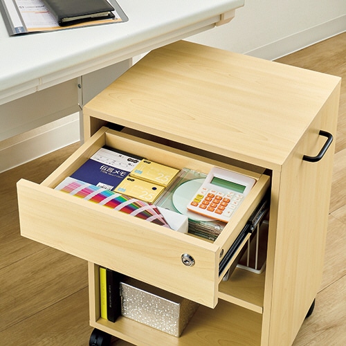 ●A4クリアファイルや小物も収納可能な木目のワゴン。